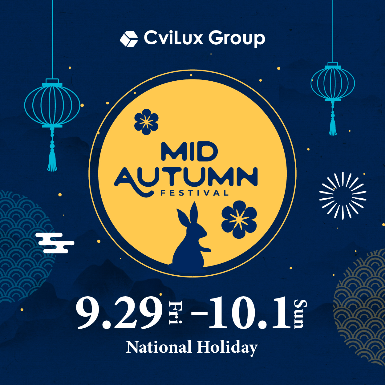 Mid-Autumn Festival is a traditional Chinese holiday celebrated on the 15th day of the eighth lunar month. The festival is a time for family gatherings, moon-gazing, and eating mooncakes. The Mid-Autumn Festival is a time for reunion, gratitude, and appreciation of the beauty of the moon and nature. Our Holiday Notice: Sep. 29 - Oct. 1, 2023 During the holidays, please leave your message or inquiry on our website ( https://www.cvilux.com/). We will revert to you as soon as possible when we are back to work.