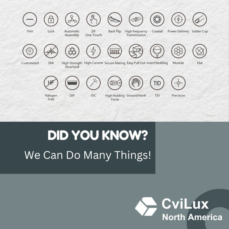 At CviLux, we're committed to exceeding our customers' expectations and delivering solutions tailored to their unique design needs. Did you know that we offer a diverse range of options to suit your requirements? 💡From back flip technology to ZIF one-touch solutions, and even halogen-free alternatives, we've got you covered! 🌐 Our commitment to innovation and customer satisfaction drives everything we do. Whether you're seeking cutting-edge functionality or environmentally conscious materials, we have the expertise and resources to meet your demands.
