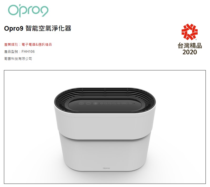 【Press information】Opro9 Smart Air Purifier Got TAIWAN EXCELLENCE 2020 AWARDS