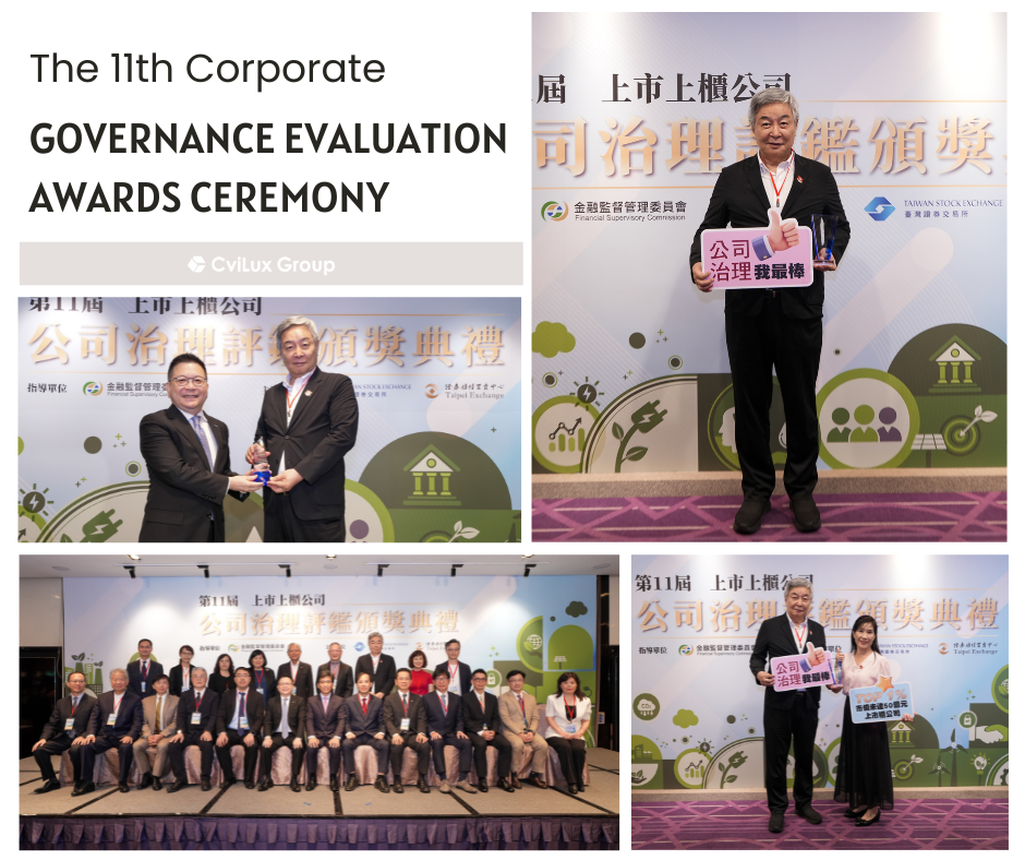 CviLux Group is honored to be recognized in the 2024 Corporate Governance Evaluation, ranking among the top 6%-20% of all listed companies, and the top 1% among companies with a market cap under 5 billion NTD! This is not only a strong recognition of our business performance, but also a testament to our unwavering commitment to integrity and professionalism. We will continue to move forward steadily, creating greater value for our customers and shareholders!